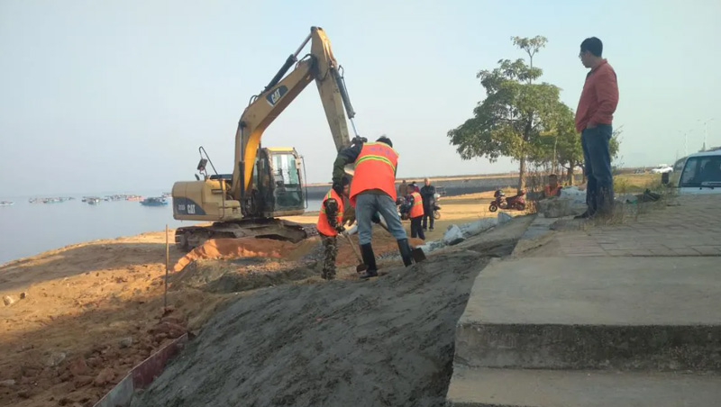 溪涌工人療休養院海堤位于深圳市大鵬新區葵涌街道,位于東南邊陲大鵬半島境內,西臨鹽田區,北與龍崗區坪山街道及惠州市接壤,東瀕大亞灣,西倚大鵬灣,南與香港新界、九龍半島隔海相望,是舒適宜人,風光秀麗的旅游勝地。溪涌工人療休養院海堤屬填海式海堤,海堤始建于2004年,經多種資金渠道自行修建,且經數年來的累計延伸和加固的海堤工程存在建設標準低、外觀質量差,且近期遭受臺風暴潮嚴重沖毀。